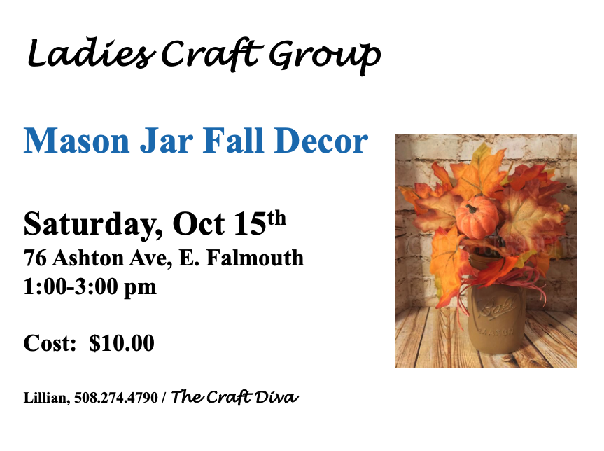 76 Ashton Avenue East Falmouth, MA 02536 Sam and Lillian’s House Directions Ladies Craft Group Date October 15, 2022 Time 1:00 pm – 3:00 pm