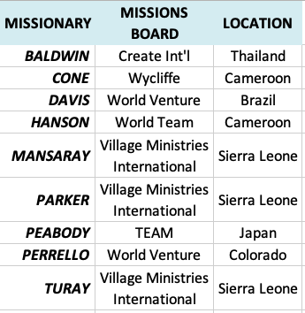 All of our Supported Missionaries